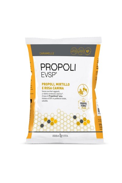 Caramelle dure a base di PROPOLI EVSP, succo di Mirtillo ed estratto di Rosa canina.