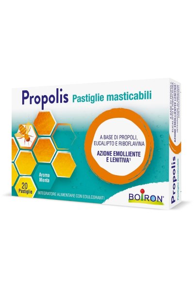 Integratore alimentare a base di Propolis M.E.D., eucalipto e riboflavina, con edulcoranti. Azione emolliente e lenitiva.
