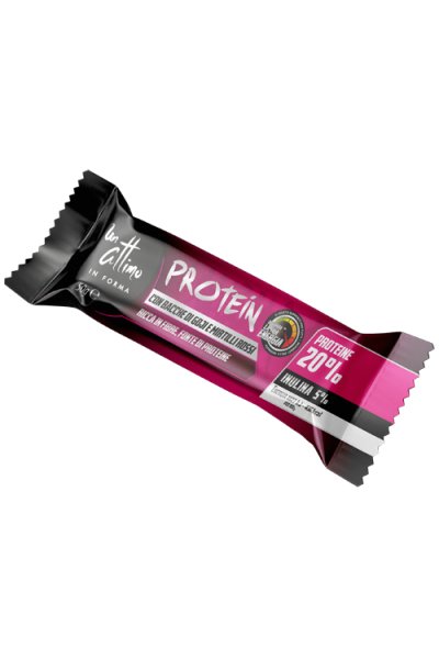 Barretta proteica 20% con bacche di goji e mirtilli rossi, gusto intenso e goloso. Fonte di proteine e ricca di fibre che permettono di ridurre la velocità di assorbimento degli zuccheri. La presenza di inulina 5%, facilita l'assorbimento di calcio, ferro e magnesio ed aiuta la riduzione di colesterolo e trigliceridi.