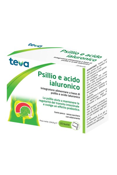 Integratore alimentare a base di Psillio e Acido Ialuronico. Coadiuvante della regolarità intestinale.Indicato per mantenere la regolarità del transito intestinale.