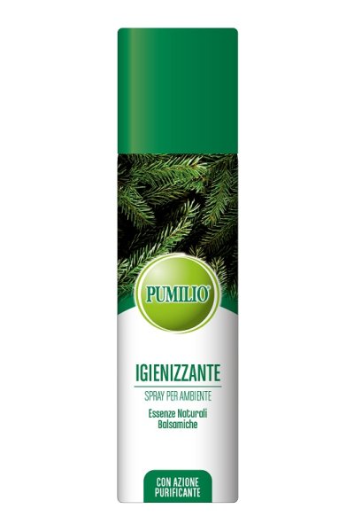 Miscela di oli essenziali concentrati tra cui mentolo, eucalipto, Menta arvensis, pino mugo e timo bianco. Contiene benzalconio cloruro, agente antibatterico. Pumilio Spray Igienizzante purifica gli ambienti deodorandoli per ore. Poche nebulizzazioni danno un'immediata sensazione di balsamica freschezza e igienizzano l'ambiente.
