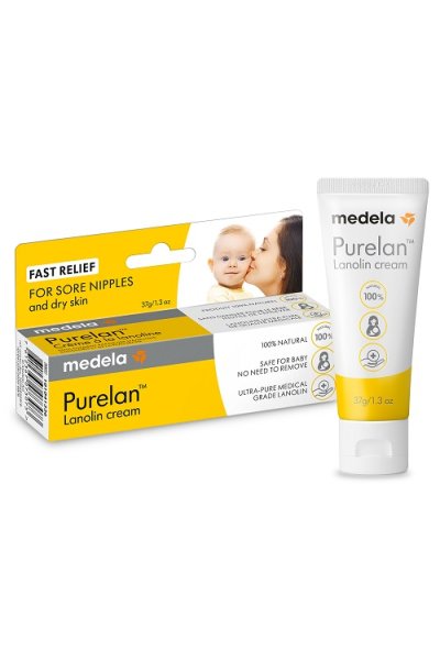 Dopo la poppata, fare uscire un po’ di latte e stenderlo sui capezzoli e sulle areole, facendolo asciugare. Applicare quindi un sottile strato di Purelan.