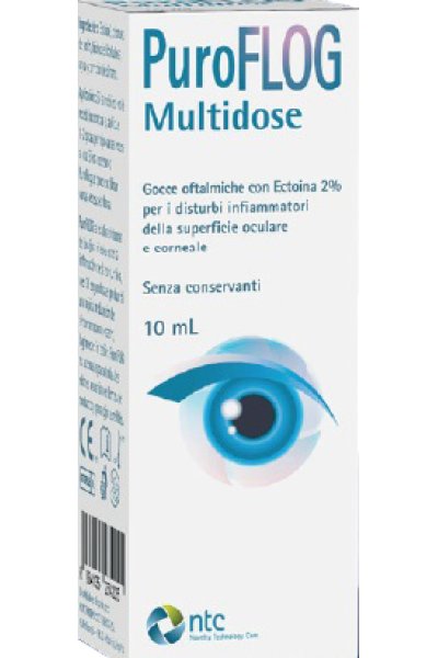 PuroFLOG Multidose è una soluzione isotonica e può essere usato per trattare lesioni dell'occhio e malattie infiammatorie della superficie corneale e oculare.