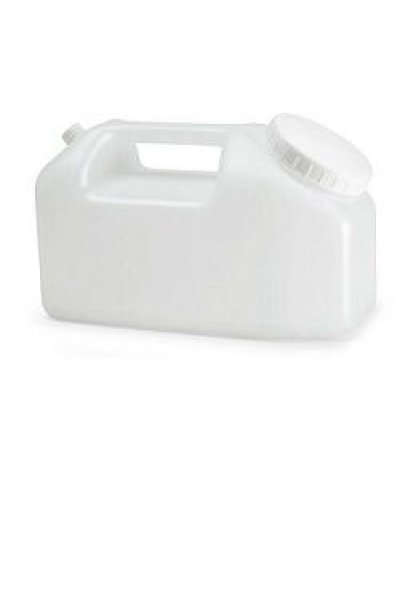 contenitore a tanica per la raccolta delle urine nelle 24 ore, in polietilene trasparente con tappo a vite.
