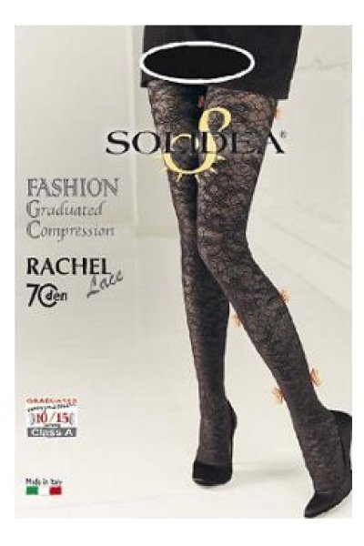 Collant in pizzo a compressione graduata. Il disegno esclusivo esalta sensualità e charme per un effetto ricco e lussuoso, da abbinare al look più sobrio ed ottenere un outfit di grande classe. L’azione preventiva della compressione graduata 10/15 mmHg combatte pesantezza e gonfiori alle gambe e contrasta l’insufficienza venosa senza disturbare l’aspetto raffinato e l’estetica impareggiabile della trama in pizzo. Con funzione igienica Sanitized.Colore: moka.