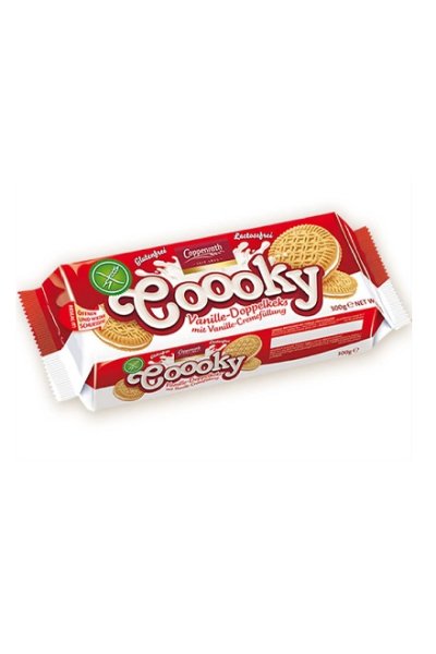 Crema di farcitura vaniglia (30%): [zucchero, olio di palma, emulsionante (lecitina di soia - E322), aroma naturale di vaniglia], zucchero, farina di mais, fecola di patate, farina (farina di riso, farina di banana), olio di palma, destrosio, inulina , bourbon naturale sapore di vaniglia, sale, la buccia di limone, uova intere in polvere, polvere di albume d'uovo, agenti lievitanti (Bicarbonato acido di ammonio - E503ii, , bicarbonato di sodio - E500ii), aroma naturale di vaniglia.