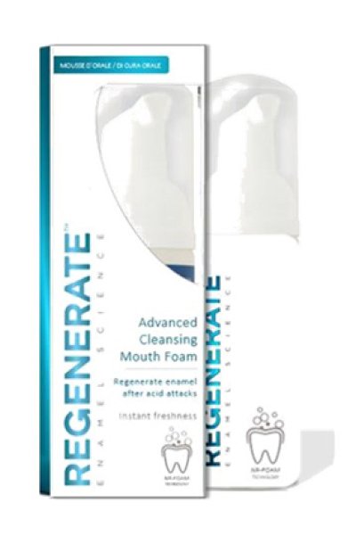 Collutorio in mousse che aiuta a rigenerare lo smalto dentale dopo gli attacchi degli acidi.