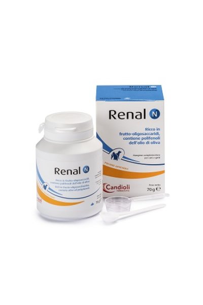 Renal N apporta fruttoligosaccaridi, polifenoli dell'olio di oliva, Enterococcus faecium e vitamine che favoriscono il mantenimento del normale metabolismo e di una idonea funzionalità intestinale.