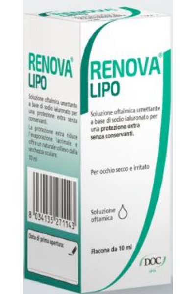 RENOVA LIPO è una soluzione oftalmica senza conservanti per il sollievo di forme medie e gravi di occhio secco e irritato. La formulazione unica di RENOVA LIPO arricchita di lipidi ricostituisce e ristabilisce i componenti del film lacrimale, producendo uno strato più stabile, fornendo protezione e ripristinando la superficie dell'occhio senza offuscare la vista. RENOVA LIPO forma uno strato protettivo sulla superficie dell'occhio, in tal modo si idrata, umetta e si ricostruisce il film lacrimale, alleviando i sintomi anche durante il periodo notturno. Si tratta di un gel altamente viscoso che si distribuisce uniformemente sull'intera superficie oculare. Funge perciò da scudo per l'occhio, proteggendolo dall'ambiente esterno e riducendo l'evaporazione del film lacrimale, fornendo in tal modo un naturale sollievo contro la secchezza oculare. La protezione extra consente il ripristino dello strato lipidico danneggiato che si verifica in caso di occhio secco.