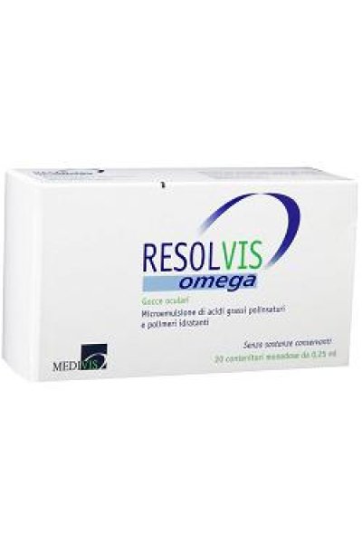 Ha un’azione lenitiva e rinfrescante, lubrifica, nutre, idrata e protegge la superficie oculare in tutti i casi di alterazione quali-quantitativa e di instabilità del film lacrimale che provocano sensazione di secchezza, bruciore e fastidio agli occhi. In particolare nei casi di blefarite, utilizzo di videoterminali, patologie sistemiche immunitarie e uso di farmaci che diminuiscono la secrezione lacrimale, condizioni ambientali di bassa umidità e costante flusso di aria condizionata, uso di lenti a contatto, dopo chirurgia della cataratta, dopo intervento di ricostruzione della superficie oculare, trapianto corneale e chirurgia refrattiva. Rresolvis® Omega per la sua azione di protezione degli epiteli corneali e congiuntivali può essere impiegato in tutti i casi di irritazione oculare.