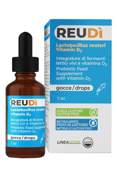 Integratore alimentare di fermenti lattici vivi (Lactobacillus reuteri) che per le sue proprietà probiotiche è utile per l'equilibrio della flora batterica intestinale. La vitamina D3 contribuisce al normale assorbimento di calcio e fosforo e alla normale funzione del sistema immunitario.