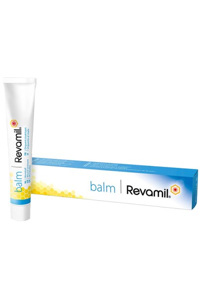 Crema per il trattamento di lesioni cutanee superficiali ed eczemi. Revamil Balm è un unguento base a cui è stato aggiunto miele puro ed è idoneo per il trattamento di vaste aree epidermiche. Il miele usato in Revamil Balm posside un elevato tenore di enzimi, fra cui il glucosio ossidasi. In un ambiente umido l'enzima glucosio ossidasi genera piccole quantità do perossido di idrogeno. Grazie all'elevata concertazione dello zucchero presente nel miele, Revamil Balm entra in sintesi con la secrezione della ferita e forma una barriera con azione antisettica ed antibatterica. Revamil Balm non contiene residui, conservanti o altre sostanze che notoriamente possono causare reazioni allergiche. Il prodotto è adatto a tutte le età.