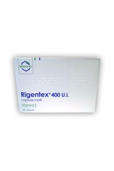RIGENTEX 200 U.I. capsule molli 1 capsula contiene: Principio attivo : RRR–α– Tocoferolo mg 140 (pari a 200 U.I. di vitamina E). RIGENTEX 400 U.I. capsule molli 1 capsula contiene: Principio attivo: RRR–α– Tocoferolo mg 280 (pari a 400 U.I. di vitamina E). Per l’elenco completo degli eccipienti, vedere paragrafo 6.1
