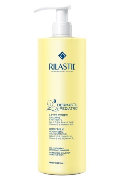 Emulsione fluida delicatamente profumata, facilmente stendibile e a rapido assorbimento, specificamente studiata per il trattamento quotidiano della pelle delicata e sensibile del neonato e del bambino.