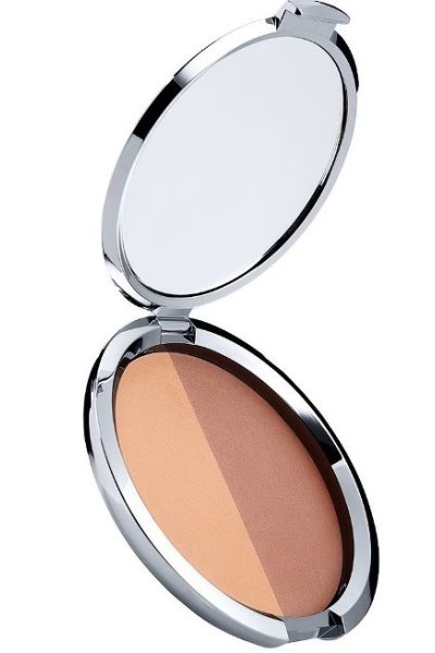 TERRA COMPATTA BICOLORE Polvere compatta ultrafine, dalla texture leggera e vellutata. Consente di illuminare l’incarnato, donando alla pelle del viso un effetto abbronzato naturale. Grazie alle due nuances, offre un colore personalizzabile, che si armonizza a qualsiasi tipologia di carnagione. Usata dopo l’applicazione del correttore del colore o del fondotinta, permette di uniformare e fissare il trucco, prolungandone la durata. Infine, per la presenza di un filtro UVB-UVA spf 15, protegge dai raggi solari e dai danni causati dal fotoinvecchiamento.