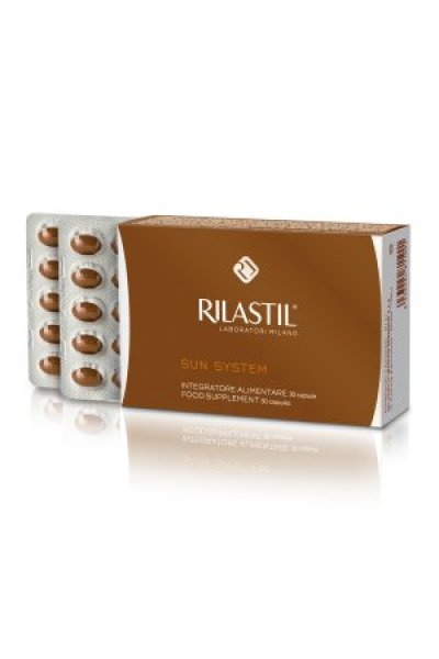 SUN SYSTEMIntegratore alimentare di sostanze ad azione antiossidante e acidi grassi polinsaturi, con l-tirosina ed estratto di semi d'uva, indicato in caso di aumentato fabbisogno o di diminuito apporto con la dieta dei nutrienti che lo compongono.