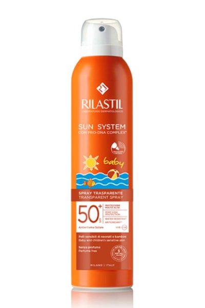 Spray corpo trasparente dalla facile applicazione. Previene l’insorgenza di scottature, macchie ed eritemi. Per pelli delicate di bambini dai primi anni di vita. Protezione molto alta, applicabile, su pelle bagnata. Resistente all'acqua.