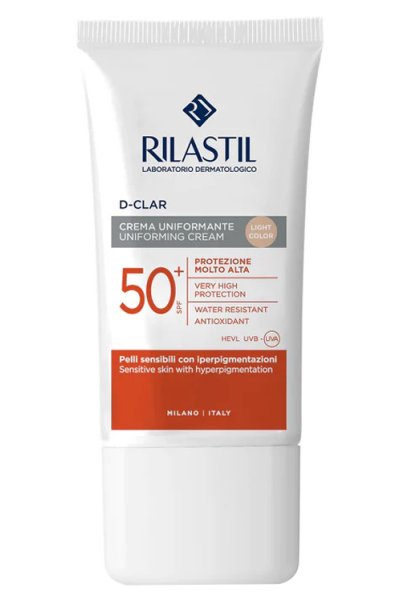 Crema fotoprotettiva dalla texture vellutata specificatamente formulata con Claritech Complex, in grado di prevenire e contrastare la formazione di macchie brune.