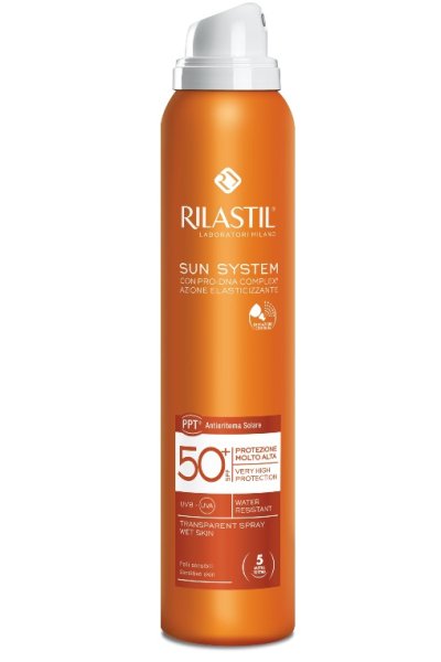 Emulsione trasparente finemente nebulizzata indicata per le pelli molto chiare e sensibili. Applicabile anche su pelle bagnata, si assorbe rapidamente e garantisce una protezione ad ampio spettro dalle radiazioni UVB-UVA (protezione molto alta).