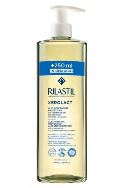 Olio detergente relipidante, a pH fisiologico (5,5) indicato per la detersione quotidiana in caso di secchezza severa del lattante, del bambino, dell’adulto e per le pelli fragili, e soggette a prurito.
