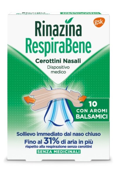 Dispositivo Medico.Cerottini nasali con aromi balsamici. Sollievo immediato dal naso chiuso. Fino al 31% di aria in più rispetto alla respirazione senza cerottini.