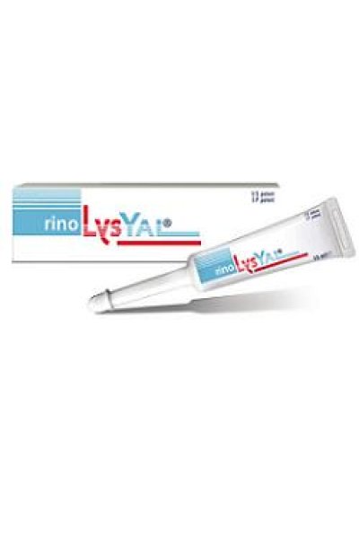 Dispositivo medico CE, classe IIb. Coadiuvante nella riparazione e rigenerazione della mucosa nasale. Favorisce il processo trofico che è alla base della rigenerazione della mucosa nasale ed esercita un’azione lubrificante, emolliente e protettiva nei casi di sensazione di naso chiuso e di secchezza nasale. Il sale di lisina dell’acido ialuronico, additivato con la timina, presente in rinoLysYal, esalta l’idrodinamica della catena polimerica dell’acido ialuronico. Crema che coadiuva il processo di riparazione della mucosa nasale lesa/secca o comunque alterata a causa di:• Riniti acute (raffreddore) e croniche (come ad esempio negli utilizzatori cronici di decongestionanti nasali).