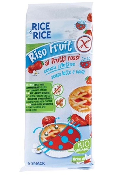 Confettura alla fragola e lampone (*zucchero di canna, *fragole, *lamponi, gelificante: pectine, correttore di acidità: acido citrico), *olio di palma, *farina di riso, *farina di mais, *amido di mais, *farina di soia tostata, *fecola di patate, *zucchero di canna, *sciroppo di glucosio-fruttosio da mais, *amido di riso, *crusca di riso, agenti lievitanti (tartrati di potassio, carbonati di sodio), sale, *aroma naturale.