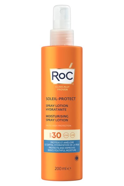 Lozione spray che assicura un'elevata protezione solare mantenendo l'idratazione naturale della pelle.