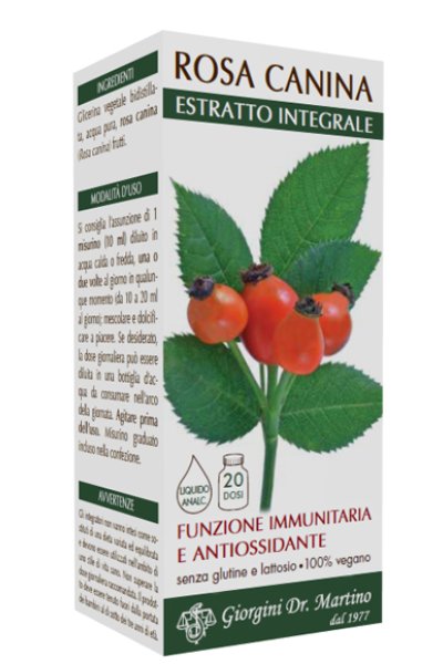 La rosa canina svolge un'azione di sostegno e ricostituente. È naturalmente ricca di vitamina C che possiede molteplici proprietà: favorisce il metabolismo energetico riducendo la stanchezza e l'affaticamento; protegge le cellule dallo stress ossidativo e rigenera la forma ridotta della vitamina E; contribuisce alla normale funzione del sistema immunitario, del sistema nervoso e della funzione psicologica; promuove la formazione del collagene aiutando a mantenere le normali funzioni di vasi sanguigni, ossa, cartilagini, pelle, denti e gengive; incrementa l'assorbimento del ferro.