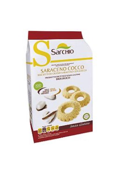 Farina di grano saraceno* (40,6%); sciroppo di riso*; zucchero di canna*; uova*; olio di semi di girasole non idrogenato* (7%); amido di mais*; farina di riso*; *scaglie di cocco; addensanti: farina di semi di carruba*; aroma naturale di cocco*.