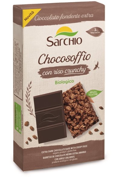 Prodotto biologico snack senza glutine a base di chicchi di riso soffiato e cioccolato fondente. Perfetto in ogni momento della giornata.Ingredienti