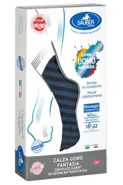 Calze uomo fantasia a compressione graduata in filato Q-SKIN, ad azione batteriostatica per facilitare la traspirazione della pelle e ridurre la sudorazione del piede. Possono essere abbinate sia ad un look classico ed elegante, sia ad un abbigliamento casual e giovanile. Ideali per essere indossate in qualunque occasione, dal lavoro al tempo libero, fino all’occasione speciale. Realizzate con polsino morbido che non stringe, e con punta e tallone in tinta unita.