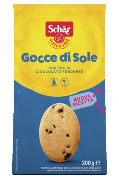 Biscotti di pasta frolla con gocce di cioccolato fondente senza glutine.