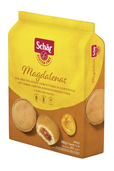 Uova; farina di riso; confettura di albicocca 18% (sciroppo di glucosio-fruttosio, purea di albicocca, saccarosio, addensante: pectine, correttore di acidità: acido citrico); zucchero; olio vegetale; amido di mais; stabilizzante: sorbitolo; emulsionante: mono e digliceridi degli acidi grassi; purea di mele (mele, acidificante: acido ascorbico); amido di riso; agenti lievitanti: tartrato monopotassico; gluconodeltalattone; carbonato acido di sodio; addensanti: farina di semi di carrube; gomma xanthano; sale; aroma naturale. Può contenere tracce di soia.