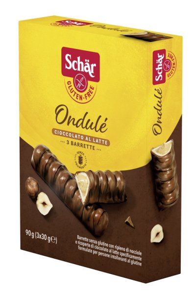 Crema alla nocciola 57% [zucchero, oli vegetali (palma, girasole); nocciole 20%, lattosio (latte), siero di latte in polvere, latte intero in polvere, aroma naturale di vaniglia; emulsionante: lecitina di girasole]; cioccolato al latte 23% (zucchero, burro di cacao, latte intero in polvere, pasta di cacao; emulsionante: lecitina di soia; aroma naturale di vaniglia); cialda senza glutine (farina di riso, fecola di patate, proteine del latte, amido di mais, olio di palma; emulsionante: lecitina di girasole; agenti lievitanti: bicarbonato di sodio e bicarbonato di ammonio); cioccolato fondente 7,5% (pasta di cacao, zucchero, burro di cacao; emulsionante: lecitina di soia; aroma naturale di vaniglia).