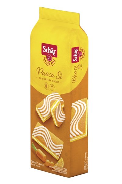 Merendine di pan di spagna senza glutine al gusto di carota e arancia. Specificamente formulate per persone intolleranti al glutine.