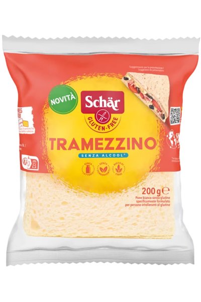 Tramezzino di pane bianco prodotto con miglio e quinoa, senza glutine volutamente privo di crosta e dalla consistenza morbida e compatta, ricco di fibre, senza olio di palma e senza conservanti.