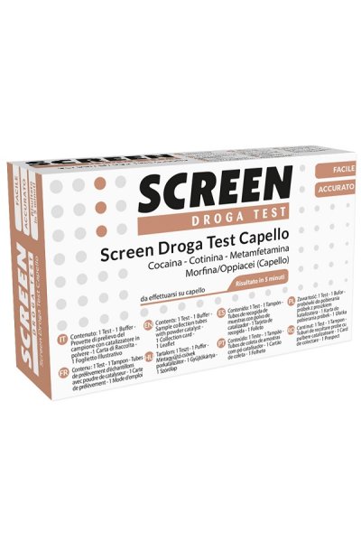 Istruzioni per l'uso per ogni combinazione di test per le seguenti droghe: Cotinina, Metanfetamina, Morfina/Oppiacei e Cocaina. Test in un'unica fase per la rilevazione qualitativa simultanea di droghe d'abuso nei capelli umani.