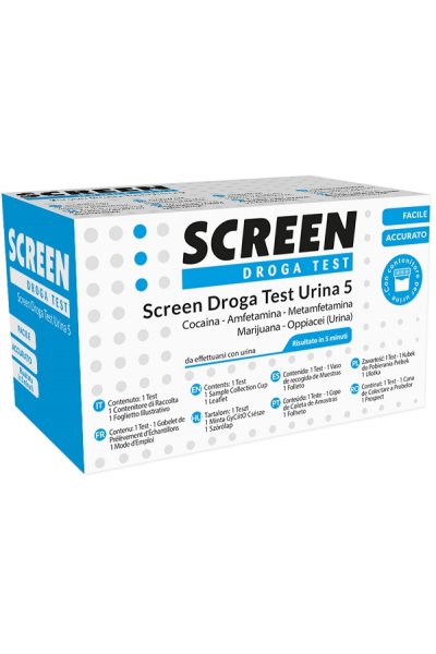 Istruzioni per l'uso per ogni combinazione di test delle seguenti droghe: amfetamina, metamfetamina, cocaina, marijuana e oppiacei.