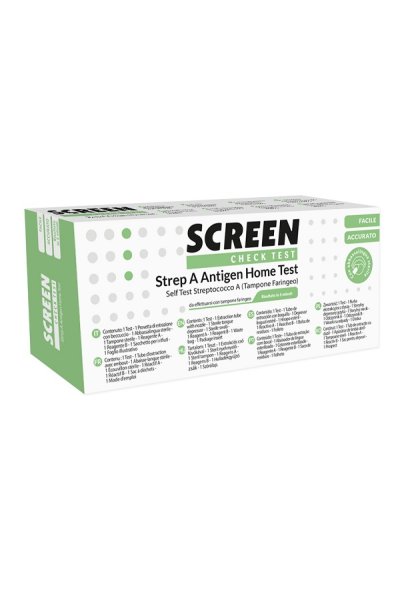 Test immunocromatografico rapido per la rilevazione qualitativa e presuntiva degli antigeni dello Streptococco di Gruppo A da effettuarsi con tampone. Il test è un dispositivo diagnostico in vitro, e viene utilizzato come ausilio nella diagnosi di infezione da Streptococco A in pazienti che presentano sintomi. Screen Test Streptococco è utilizzato per autodiagnosi. I bambini di età inferiore ai 18 anni devono essere supervisionati o aiutati da un adulto durante l'esecuzione del test. La procedura del test non è automatizzata. I risultati del test non devono essere utilizzati come unica base per la diagnosi, ma si raccomanda di essere interpretati da un medico nel contesto clinico.