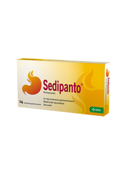 PosologiaPosologia La dose raccomandata è di 20 mg di pantoprazolo (una compressa) al giorno. Per ottenere un miglioramento dei sintomi può essere necessario assumere le compresse per 2-3 giorni consecutivi. Una volta avvenuto il sollievo completo dei sintomi, il trattamento deve essere interrotto. Il trattamento non deve superare le 4 settimane senza consultare medico. Nel caso in cui non si ottenga un sollievo dei sintomi entro 2 settimane di trattamento continuato, il paziente deve essere informato di consultare il medico. Popolazioni speciali Non è necessario un aggiustamento della dose nei pazienti anziani o nei pazienti con funzionalità renale o epatica compromessa. Popolazione pediatrica L’uso di Sedipanto non è raccomandato nei bambini e negli adolescenti al di sotto di 18 anni di età a causa dei dati insufficienti sulla sicurezza e sull’efficacia. Modo di somministrazione Sedipanto 20 mg compresse gastroresistenti non devono essere masticate o frantumate, e devono essere deglutite intere con un po’ di acqua prima di un pasto.