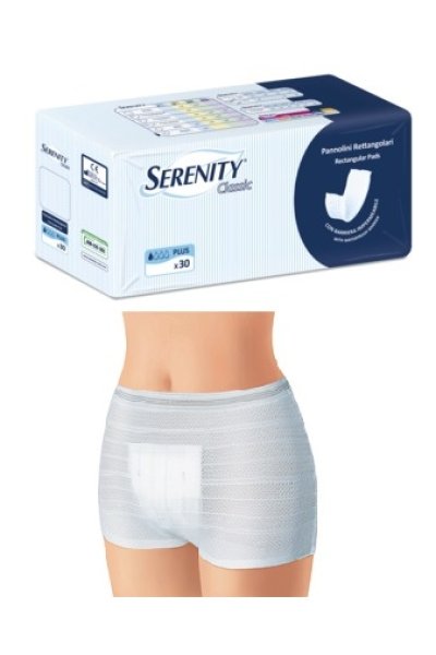 Pannolone rettangolare da indossare in abbinamento alle apposite mutande elasticizzate Serenity, lavabili e riutilizzabili, che permettono al pannolone di aderire al corpo e rimanere in posizione, per offrirti la protezione di cui hai bisogno. Il pannolone rettangolare con barriera Serenity è rivestito di morbido tessuto non tessuto ipoallergenico che cattura rapidamente e in maniera duratura i liquidi evitando così che vengano a contatto con la pelle. Per una sensazione di asciutto e freschezza che dura a lungo.