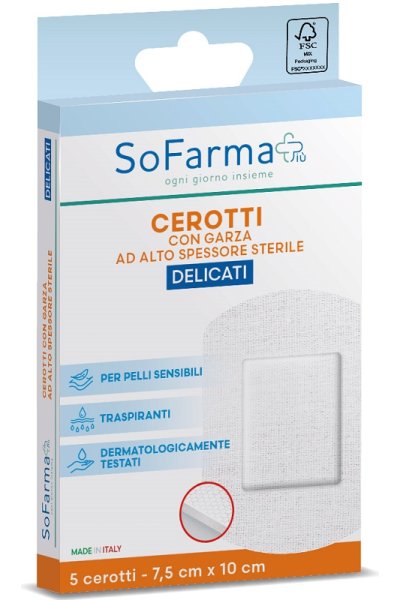 Cerotti sterili in TNT bianco con garza ad alto spessore con strato antiaderente.