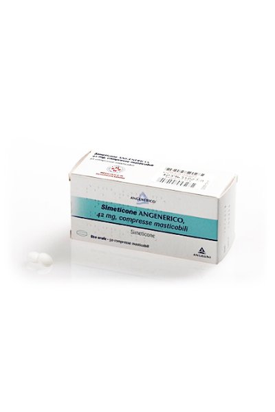 AvvertenzeLe compresse devono essere masticate e non ingerite intere. Le compresse di SIMETICONE ANGENERICO non sono raccomandate nei bambini al di sotto dei 12 anni per le limitate informazioni sulla loro sicurezza. SIMETICONE ANGENERICO contiene saccarosio (vedere paragrafo 6.1). Pertanto, pazienti con rari problemi ereditari di intolleranza al fruttosio, malassorbimento di glucosio–galattosio o deficit di saccarasi–isomaltasi non devono assumere questo medicinale. In caso di persistenza o peggioramento dei sintomi o in caso di stipsi prolungata, il paziente deve consultare il medico. Non utilizzare in caso di sospetta perforazione intestinale o ileo.