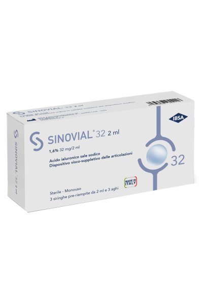 Indicato in caso di tendinopatie acute e croniche e/o associate a disabilità articolare e nel processo di riparazione dei tendini, anche in seguito ad interventi chirurgici. SINOVIAL 32 2 ml è un dispositivo medico studiato per integrare il liquido sinoviale, permettendo di ripristinare le proprietà fisiologiche e reologiche delle articolazioni artrosiche e dei tendini. Nell’articolazione SINOVIAL 32 2 ml riduce il dolore e favorisce il recupero della mobilità articolare e tendinea associata, agendo solo nella cavità sinoviale in cui viene iniettato, senza esercitare nessuna azione sistemica. SINOVIAL 32 2 ml inoltre, grazie alle sue caratteristiche lubrificanti e viscoelastiche agisce a livello della guaina tendinea, dove migliora lo scorrimento del tendine (“Tendon gliding”) ed i processi fisiologici di cicatrizzazione/riparazione, prevenendo in questo modo la formazione di aderenze nei decorsi post-operatori.