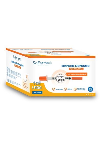 1. Strappare la confezione singola, estrarre la siringa di insulina, togliere il cappuccio protettivo e il tappo inferiore.