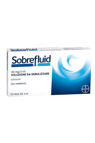 Sobrefluid 60 MG/ 4 ML soluzione iniettabile adulti. Una fiala da 4 ml contiene: sobrerolo 60 mg. Sobrefluid adulti200 mg supposte. Una supposta contiene: sobrerolo 200 mg. Sobrefluid bambini 100 mg supposte. Una supposta contiene: sobrerolo 100 mg. Sobrefluid 40 mg/3 ml soluzione da nebulizzare. Una fiala da 3 ml contiene: sobrerolo 40 mg. Per gli eccipienti, vedere 6.1.