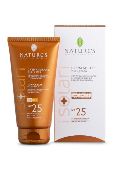 Crema solare con Acqua Unicellulare di Arancia Dolce bio e succo di Albicocca.