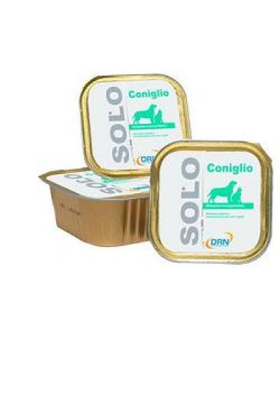 alimento umido monoproteico per cani e gatti contenente proteine ottenute dal coniglio, senza coloranti né conservanti, né appetizzanti.