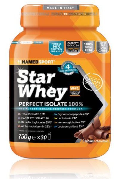 Formulazione a base di proteine del siero del latte isolate CARBERY Isolac 90, ottenute per microultrafiltrazione a doppio flusso incrociato (Cross-Flow-Micro-filtration – CFM), che si distinguono per grado di purezza. Il particolare processo estrattivo consente di ottenere un prodotto di elevato valore biologico (119) dal completo profilo aminoacidico. Star Whey è arricchito con l’esclusiva formulazione brevettata Named 4 Protein Matrix, a base di proteasi, estratto di fieno greco e colostro bovino.